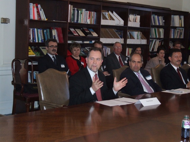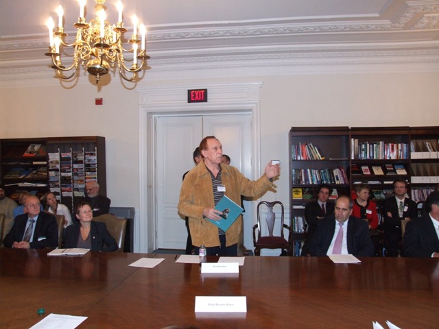 During the discussion the participants exchanged their views on the current situation in Belarus. They were discussing latest changes in the country (the so called "liberalization"), European Union's policy towards Belarus, and what American policy towards Belarus should look like under the new administration. The discussion was moderated by Pavol Demes, director of German Marshall Fund's Belarusan program. Belarusan artists Ales' Shaternik and Ales' Marachkin, The Third Way community coordinator Pavel Marozau, human rights activists Irina Krasouskaya and Tatyana Protko, and the archbishop of Belarusan Autocephalous Church Svyataslau were among the participants.