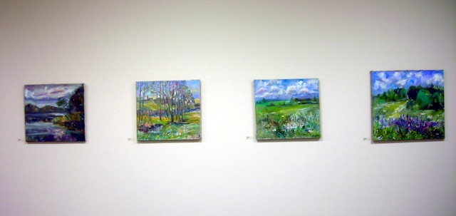 The elder Shaternik’s work consists of five landscapes that are vivid and full of energy which is demonstrated through his vibrant use of color and vigorous brushstrokes.  His daughter Julia exhibits seven paintings that are figurative and skillfully express her talent for balancing color, shape and line.  Both artists hail from Minsk, the capital of Belarus.  Ales received his training at the Belarusian Theatre and Art Institute (1967), while Julia received her MFA from Belarusan State University of Culture in 2004.  Both artists have a comprehensive record of international exhibitions and are in numerous private and museum collections